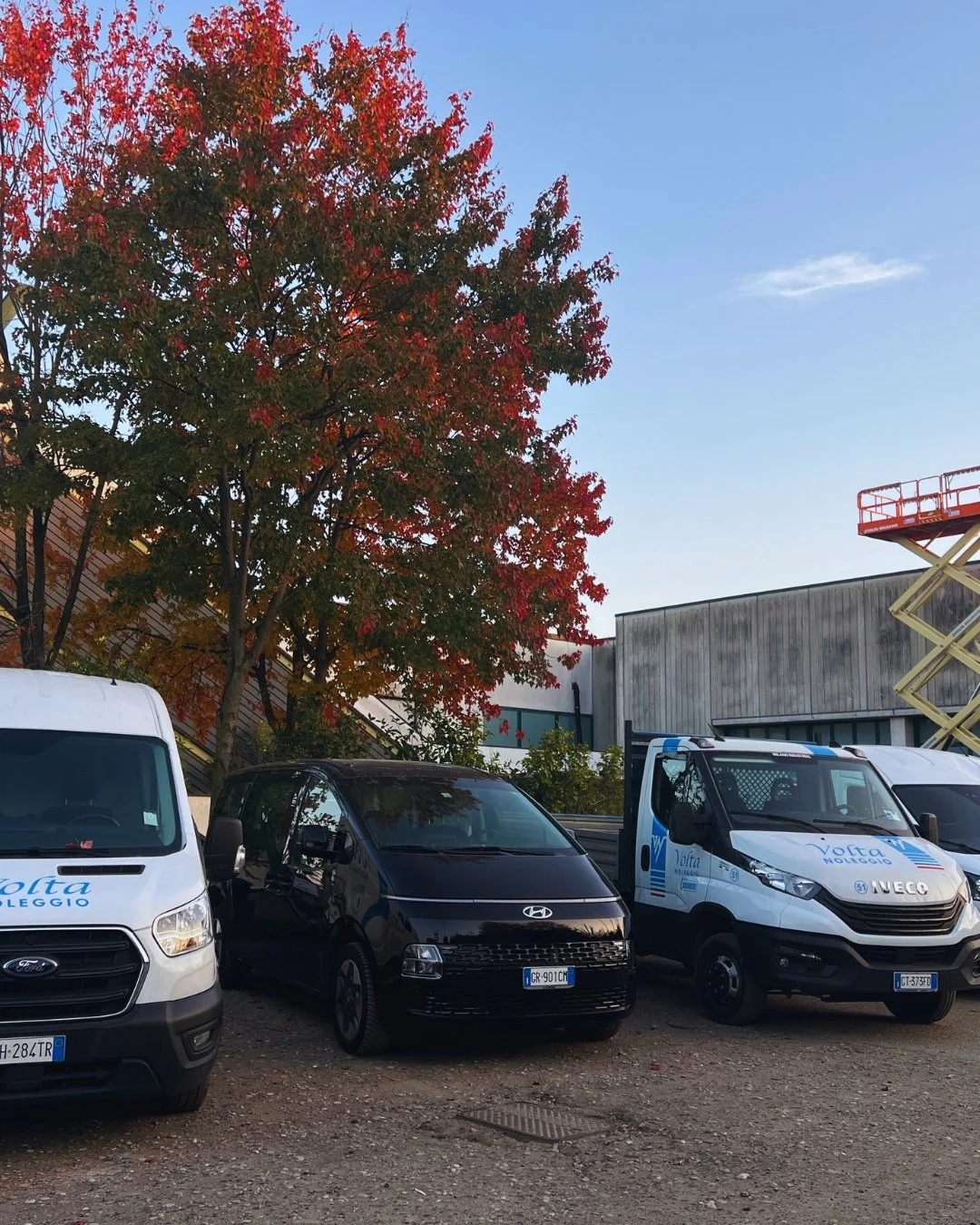Parco auto Volta Noleggio con furgoni Ford e Iveco e minivan Hyundai Staria. Noleggio veicoli per privati e aziende, con ampia gamma di mezzi efficienti e moderni